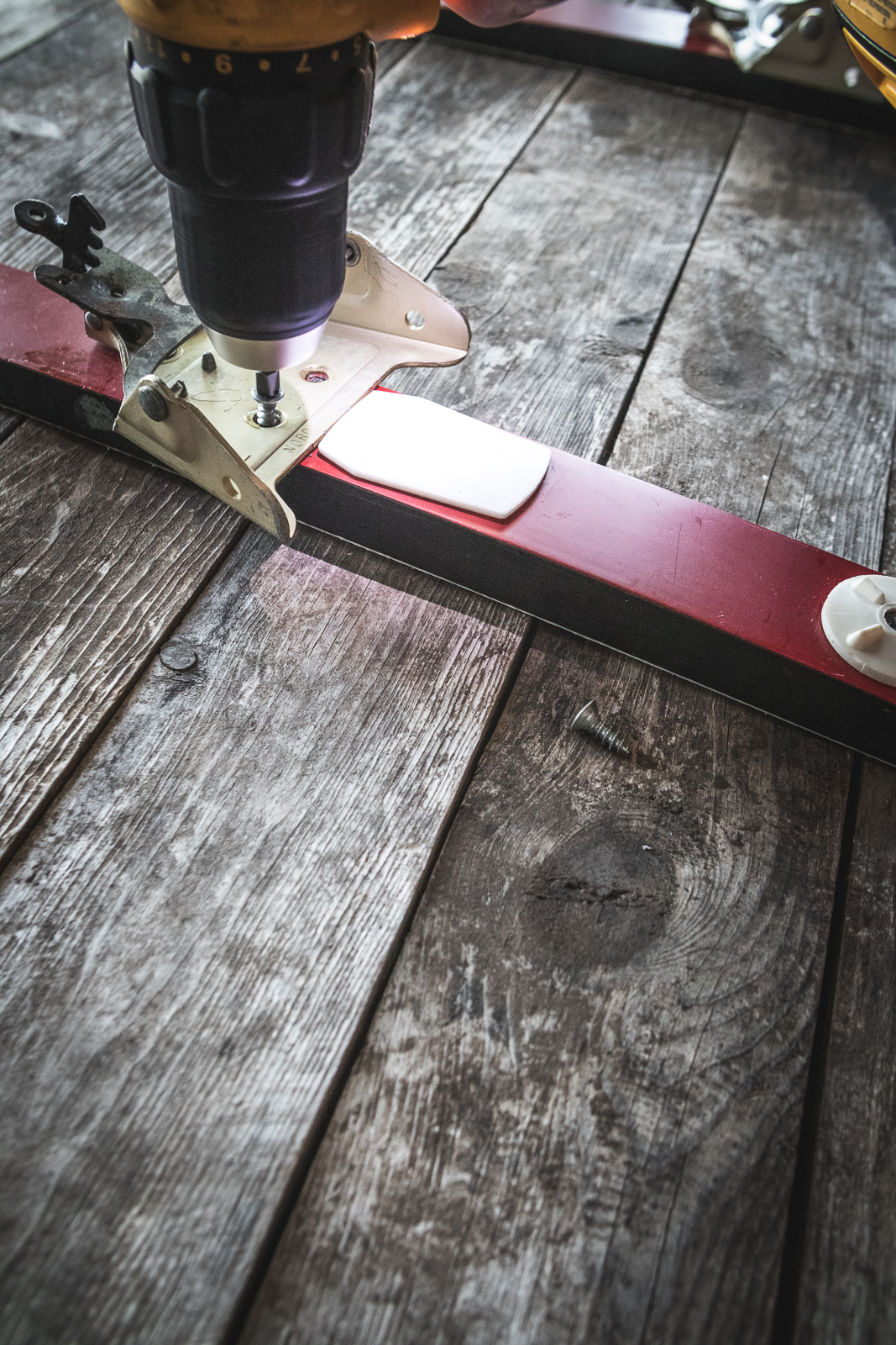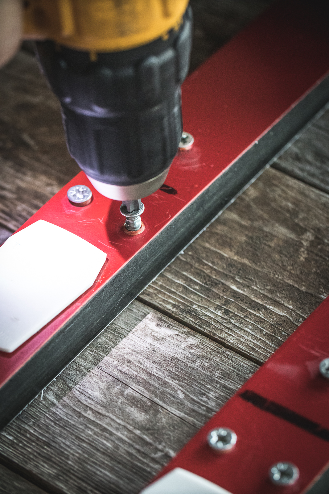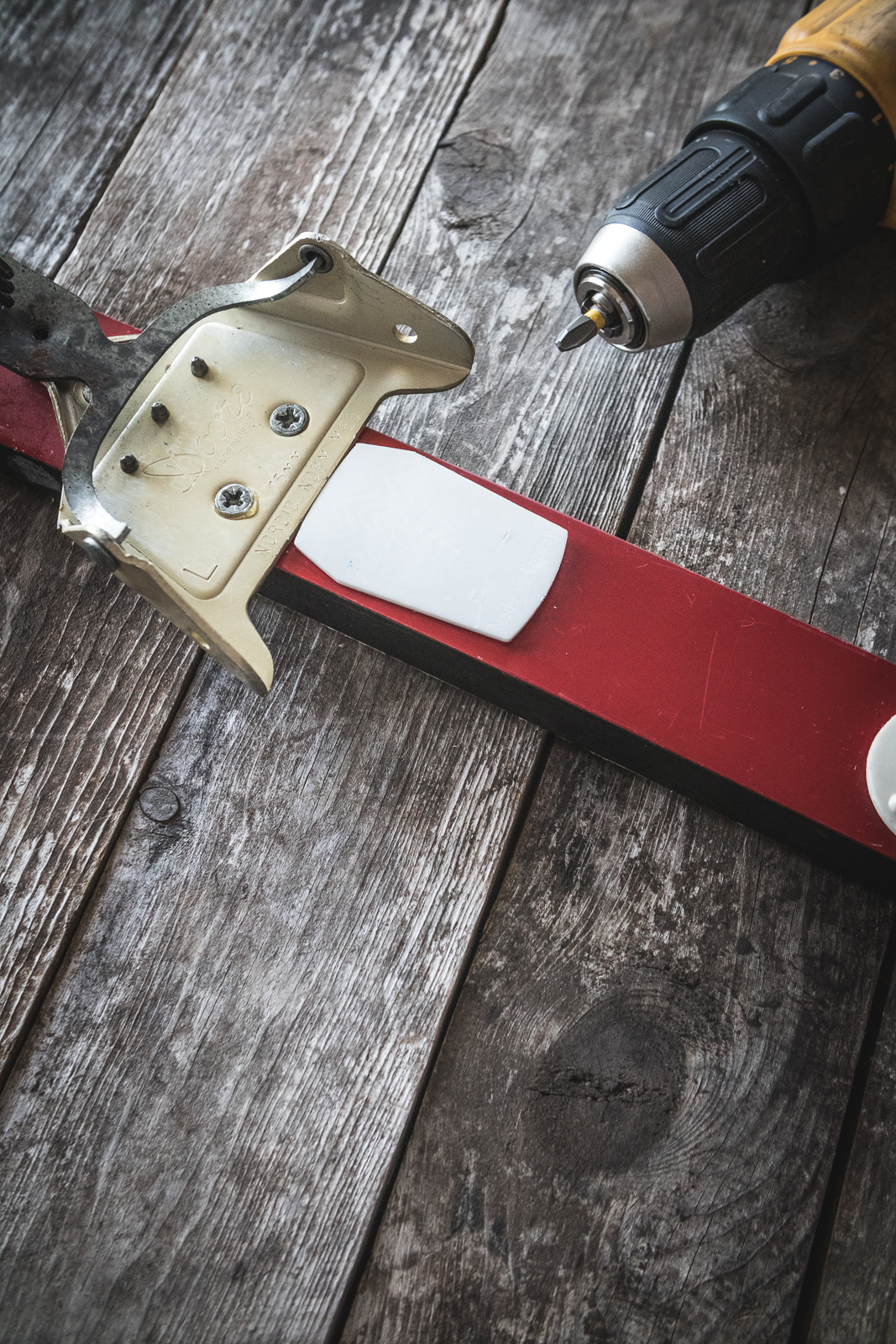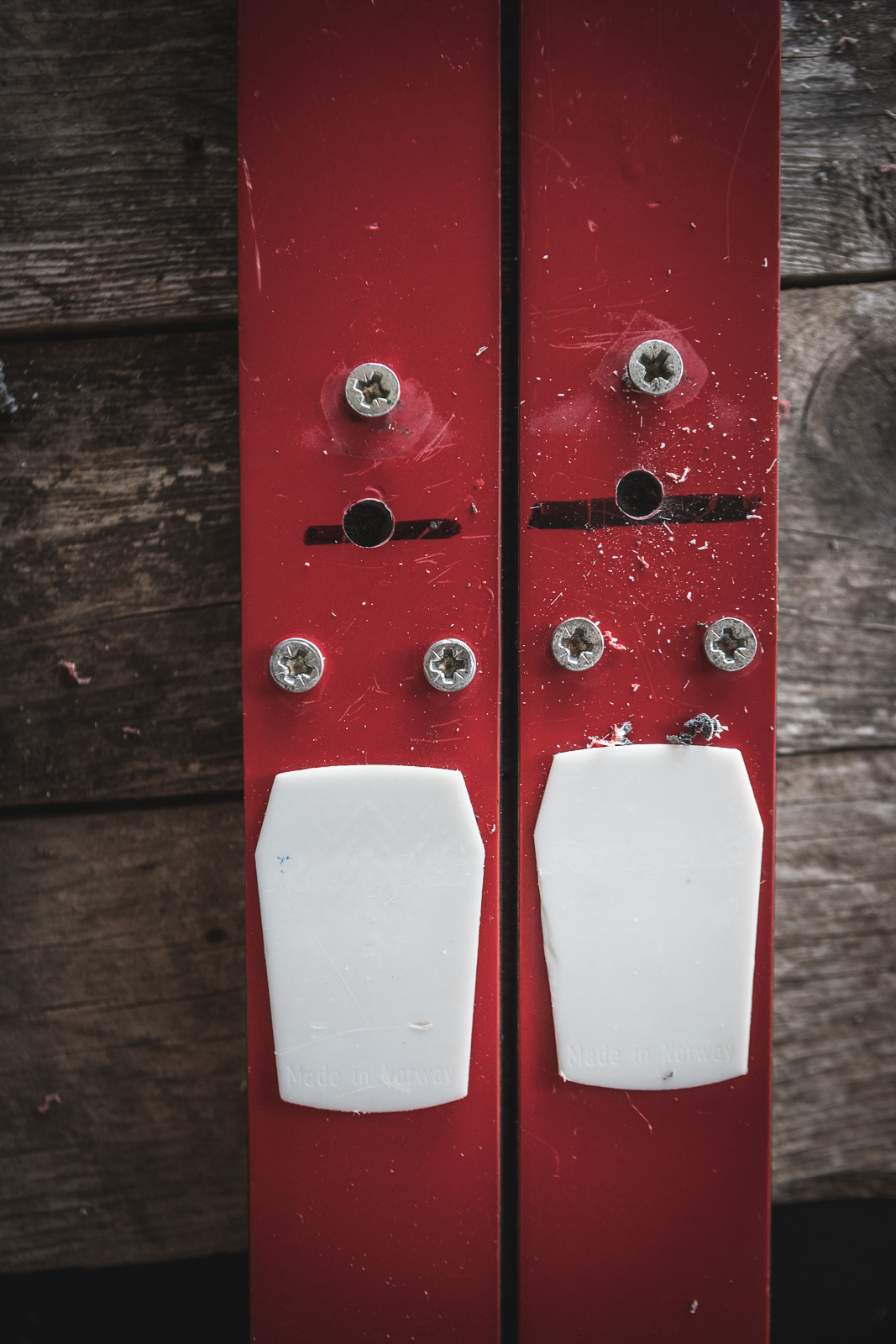 - Remove any bindings or unwanted bits on your skis. I reattached the screws that held in the bindings so that I didn’t have to refill the holes. Some people leave the bindings on but it might get in the way of drinking or holding the ski properly.
